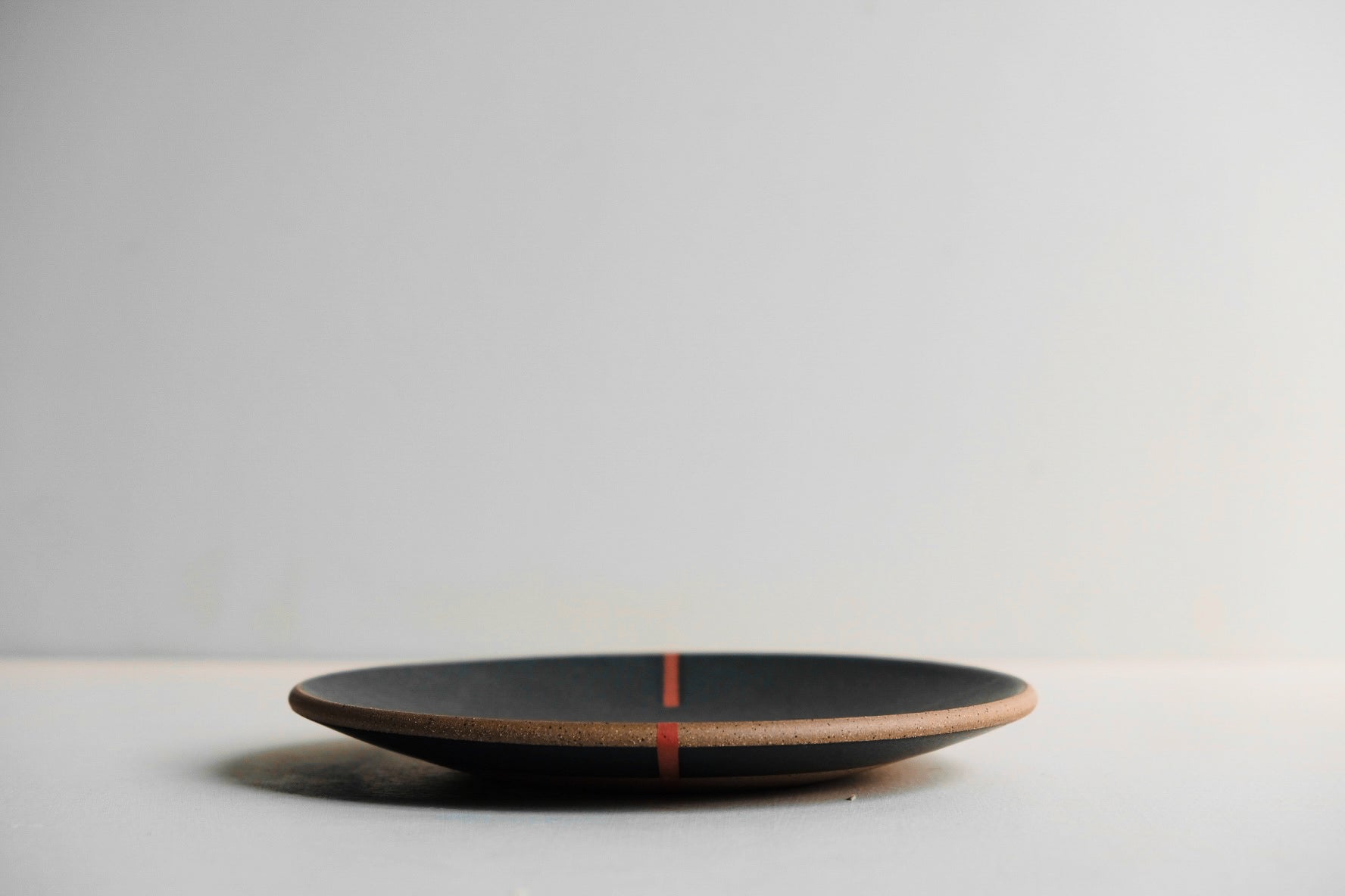 Our plates are handmade, trimmed, and bisque fired before being dipped in glaze on each side, leaving a line down the middle. This is an aesthetic element we love and embrace!